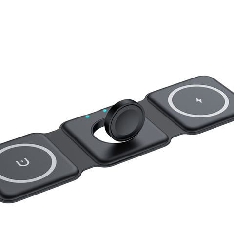 Ladestasjon for telefon, AirPods, Apple Watch, Apple Pencil.