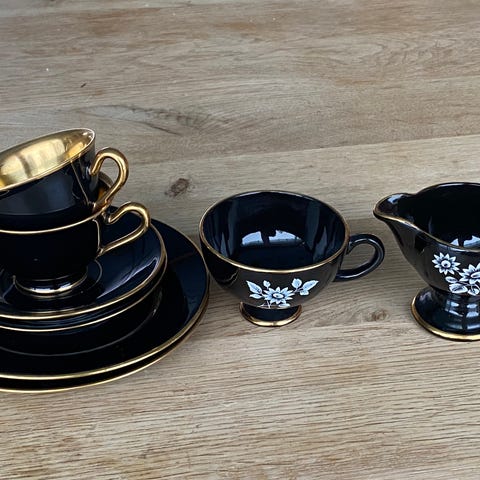 I god stand! Ingen skår, bildene ser feilfrie ut men gullkantet er slitt på noen.