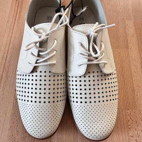 Selger helt ny lys tåkerosa sko i ekte skinn med hullmønster fra Seven Lemon for 200 kr.