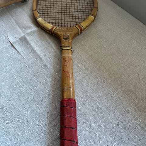 Snauwaert Caravelle Tennisracket i tre med klassisk design. Racketen har et tradisjonelt trefat og strenger, og viser tegn på bruk. Egnet for samlere eller brukere som ønsker en vintage tennisracket. 3 tennis racket