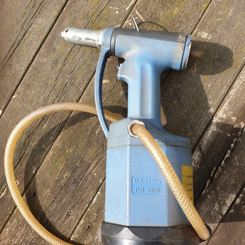 Gesipa Accubird poppnagelpistol på batteri, med 2 stk batteri og lader. Tar alle 2.4mm til 5mm nagler, pluss 6mm i aluminium. Dette var den original - tysk produsert? Nåke bruksmerker, men fungerer bra. Ca 12000kr ny med 2 batterier.