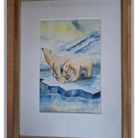 Selger ett orginalt akvarell maleri av isbjørn familie