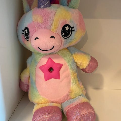 Dukken bruker 3 AAA batterier (ikke inkl.). Dukken har borrelåser slik at den også kan festes på seng, vogn, bag osv.