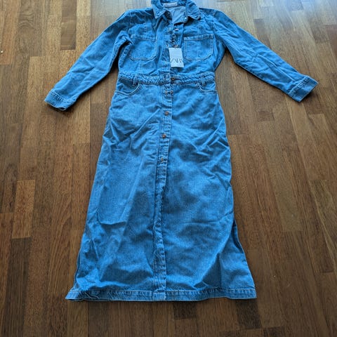 Kjole i demin, men knyting i liv. Må hentes evt overleveres på Oslo s.
