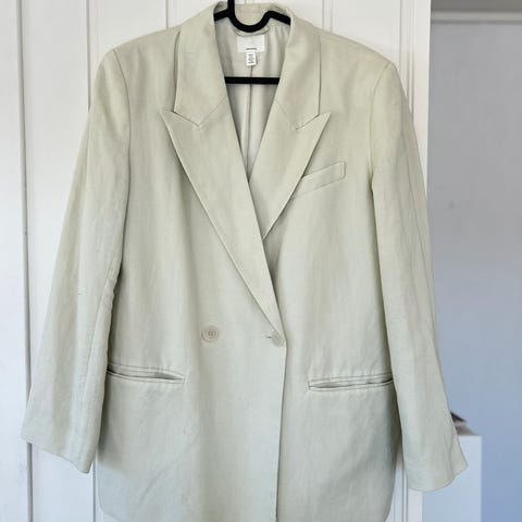 Zara linjakke i størrelse M. Den er veldig lite og pent brukt. Jenta på bildet bruker klær størrelse S.