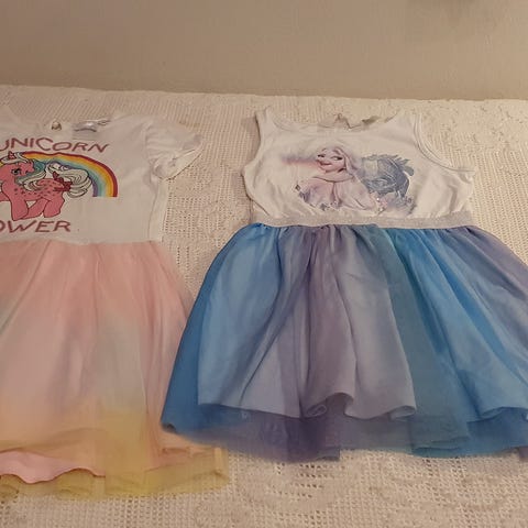 Nydelig kjole fra Moods of Norway og H&M. Str 116, men begge er brukt i 122 periode også. Moods kjolen blir ekstra fin om man damper den og skiller lagene med tyll før bruk ☺️. Noen små flekker på Moods kjolen, H&M kjolen er brukt to ganger.