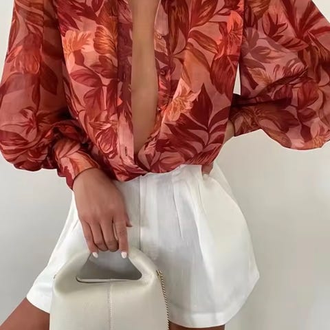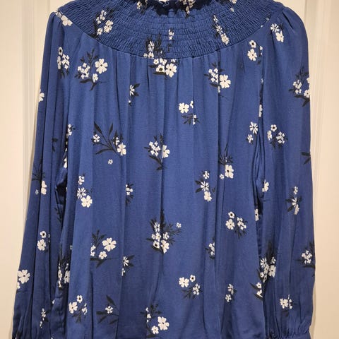 Blå penskjorte med blomstemønster i strl. 36