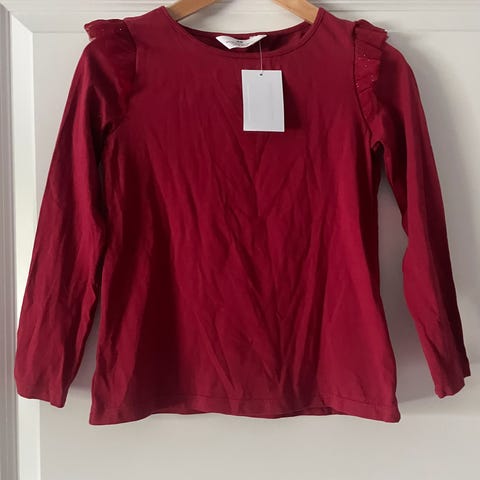 "En langermet topp i myk bomullstrikot med rund hals og lett avrundet kant nederst."