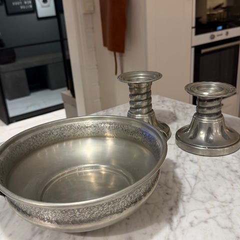2 stykk lysestaker laget av smijern for montering på vegg. De er tilegnet normal tynne stearinlys.