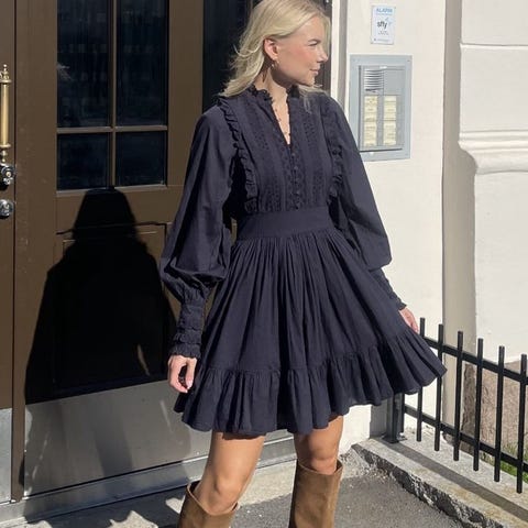 Selger denne superfine kjolen i mørk gråsort bomullspoplin. Kjolen er ca 90 cm lang og har lommer 🖤 Kun tatt av lappen og vasket men aldri brukt. True to size.