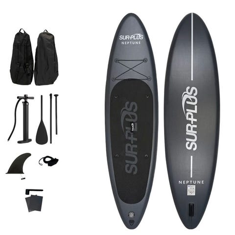 SurPlus Neptune SUP pakke er et allsidig oppblåsbart SUP-brett med god oppdrift i vannet. Brettet er retningsstabilt grunnet styrefinnen som følger med pakken, lett å padle og tilpasset flere brukere slik at det kan brukes av hele familien! En tilhørende justerbar åre kan også tilpasses den aktuelle brukeres. Med en god bredde og et solid materiale som tåler et høyt lufttrykk, har aldri SUP være mer stabile!