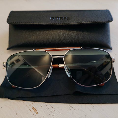 Guess solbriller selges kr 650.-kr lite brukt, ingen synlige bruksmerker, original etui og pussefille følger med