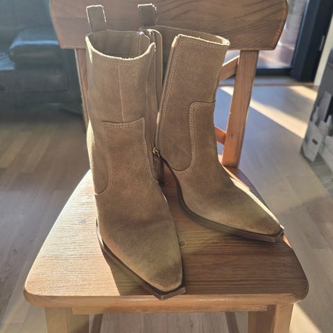 Brukt 2 ganger, mest inne på kontoret. Str 37, semsket skinn, kjempemykt og deilig!