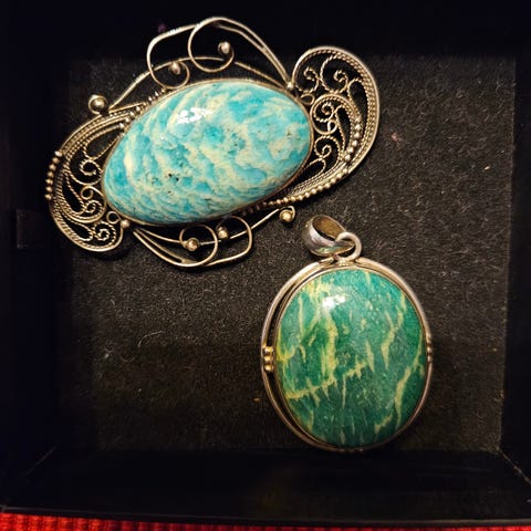 Designsmykkesett - to ringer og ett anheng - sølv/stein - Lang