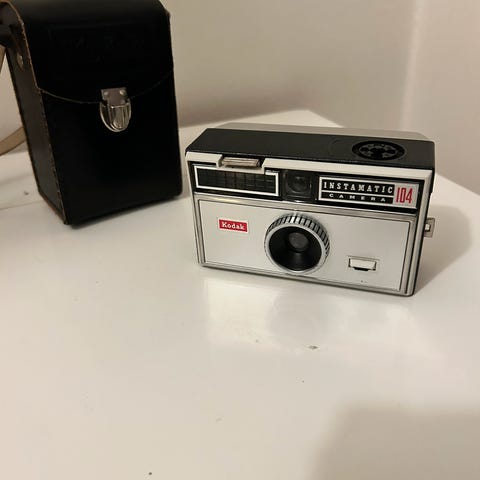 Fotoapparat fra 70-80 tallet med veske