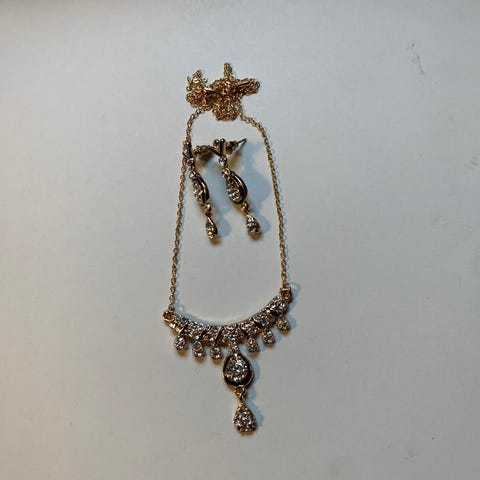 Kjedet er formet som mange små greiner med glitrende krystaller.
