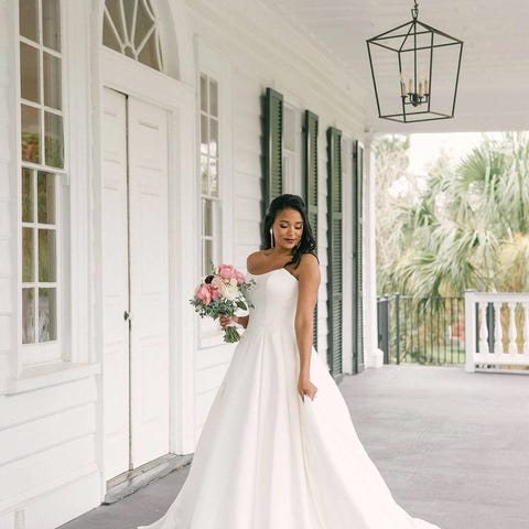 Kjole og slør er kjøpt på Kristins Brudesalong i Oslo