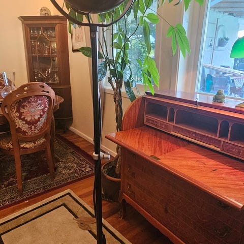 KUPP! Disse 2 vakre gulvlampene ble kjøpt for ca 1,5 år siden. Hatt en på hver side av tv'n men desverre har de så å si aldri blitt brukt. Kanskje hatt på lyset i de 3-4 ganger så disse er så gode som nye! Etter jeg kjøpte ny vegg tv, ble disse av en eller annen grunn litt for sterkt lys i til å kunne ha på begge samtidig ved siden av tvn som også ga mye lys. Hadde ingen andre plasser å plassere disse flotte lampene så derfor har jeg bestemt meg for å selge de slik at de kan være vakre og til nytte i noen andres hjem. Jeg har prøvd å finne produktbeskrivelse på disse, men har enda ikke lykkes med det. Oppdatering Kommer i så fall så fort det lar seg gjøre. Disse lampene er forholdsvis kostbare. Jeg betalte ny pris 6999 kroner per lampe. Synes d er veldig kjedelig da lampene er veldig enkle stilfulle og gir et meget godt og behagelig lys, men også ganske kraftig lyd på begge med full styrke.