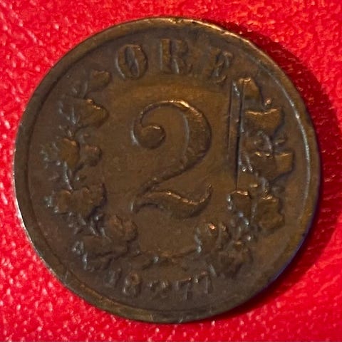2 Øre 1893 Oscar selges kr 50.-+porto
