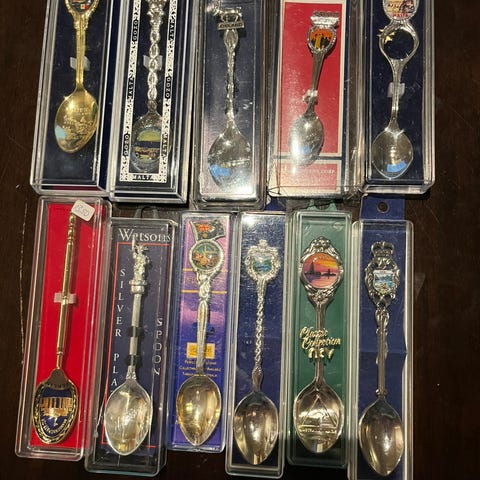 2 små skjeer i sølvplett. Dovregubbens Hall. Ubrukt. Selges pr stk kr 100,-