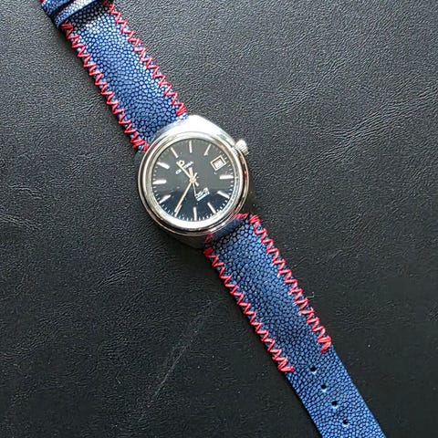 Litt patinert på «gullet» og et ørlite hakk i glasset kl.2. Ellers meget pen!! Kommer på en certina skinnreim med reptilmønster, som er litt slitt ved øverste venstre lug.