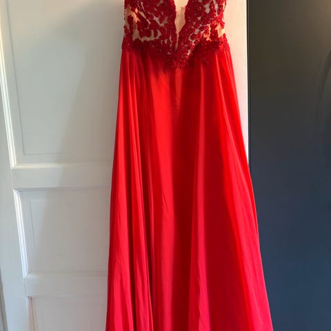Elegant rød kjole brukt kun en gang,det må bare vaskes