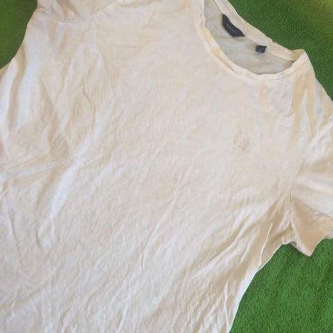 Acne studios poloskjorte i bomull. Tofarget krage ( hvit og turkis)knappestolpe med to knapper, korte ermer. Lengde 62 cm, bredde 44 cm. Dette er en stor str. 36, nærmere 38