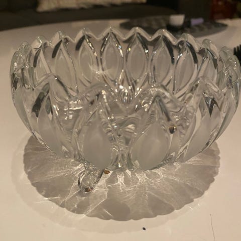 Oval/ båt forma. Usikker på navn og alder. Har en større også.