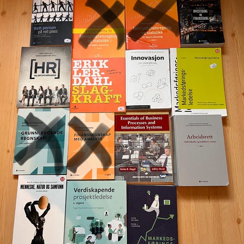 Selger mine skolebøker fra bachelorgrad i økonomi og administarsjon på Handelshøyskolen BI.
