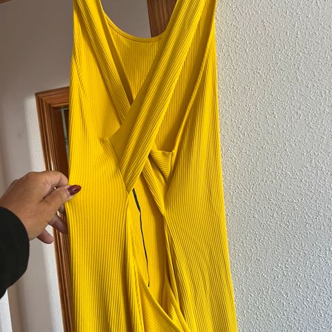 Nydelig kjole i fantastisk grønn-blå farge. Behagelig, myk, avkjølende kvalitet med streth i stoffet. Str. 2XL, men passer best XL. Brystvidde er 60 cm x 2, lengde er 113 cm. Strikk i midjen. NY. Bilder i en annen farge lånt fra nett for å vise bedre passform.