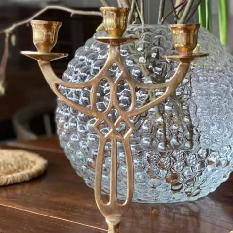 17cm høy og 7, 5 cm bred nederst på sokkelen. Har pusset den litt men trengs nok en puss til med kobberpuss . En liten bulk se bilder.