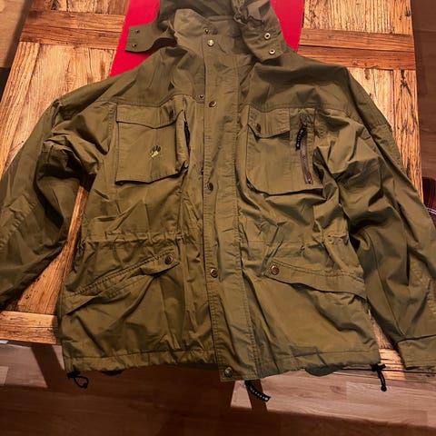Pent brukt Gaupa jakke, med glidelås til å åpne under armene. Str M. Hette mangler. Kan nok brukes av både herre og dame. Kan sendes.