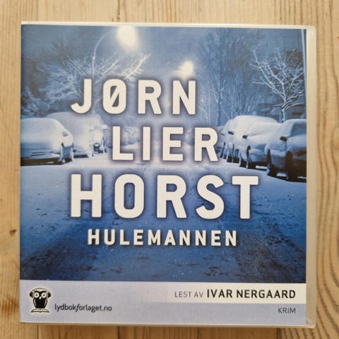 LYDBOK - JØRN LIER HORST «HULEMANNEN». Består av 7 CD. Spilletid, 8 timer, 41 minutter og 46 sekunder.. Er kun spilt én gang. Se bildene. Lydboken kan sendes, eller hentes her i Sandefjord, eller avtale henting i Tønsberg på Tolvsrød.