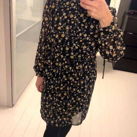 Pent brukt kjole fra Bik Bok i str L selges da den dessverre ikke passer lenger. Praktiske lommer, glidelås i siden. Nederste knapper på begge ermer mangler, se bilde.