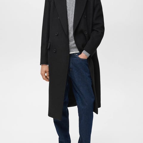 Svært pent brukt blå frakk i ullblanding fra merket Mango. Størrelse M.