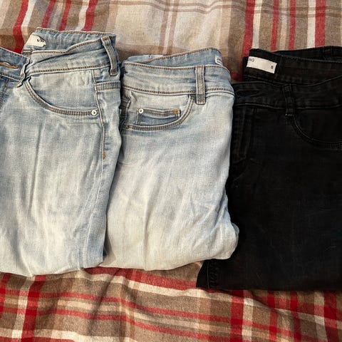4 forskjellige olabukser. Alle er i Str: L, svart Str: M😊 begge de blå buksene er det hull i på begge knær✌🏻selges samlet for 350kr. Kom med bud!