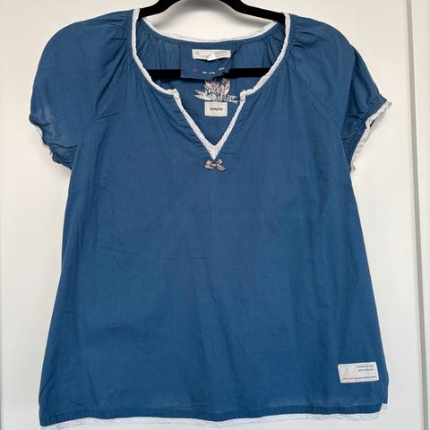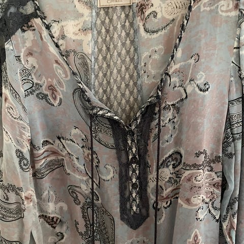 Blusen er luftig. Asymmetrisk. Lenger bak.