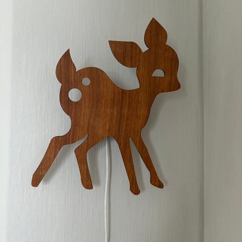 Lampe, rådyr, m/ledning 160 cm, hvit, 26x24x13 cm