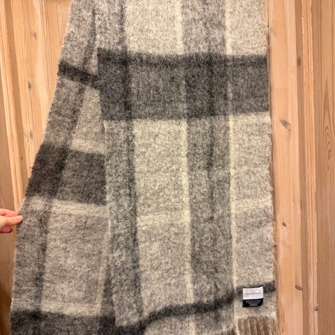 Stort og deilig luftig skjerf fra norske Barfota. Offwhite med sølvtrykk.