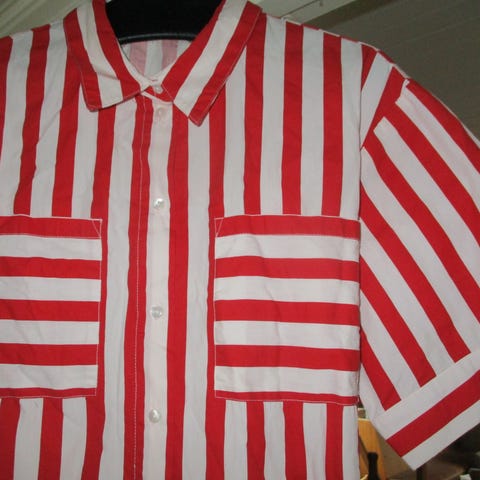 Milini rød og hvitstripet bluse med hvite detaljer str XL