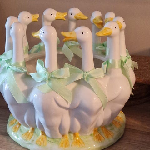 Veldig koselig bolle eller potteskjuler i keramikk. Er i perfekt stand uten noen skader eller merker. Alle sløyfene er originale.
