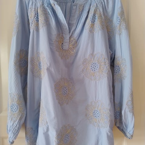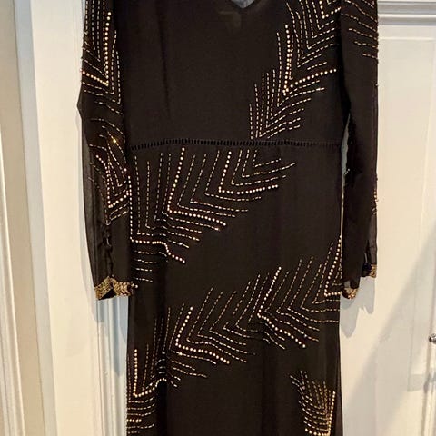Str S vil jeg anta, lappen var dessverre klippet bort. Glidelås i siden. Pent brukt.