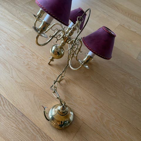 Lysekrone med ledningsdimmer og 2 vegglampetter selges høystbydende over 300 kr. Selges samlet. Kjøper betaler for frakt.