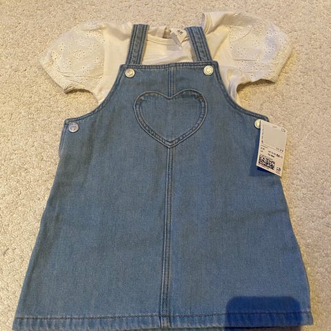 Jeans kjole og body str 86. Veldig pent og lite brukt.
