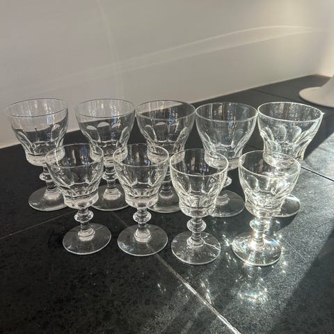 Glassene er ca. 11 cm høye, og diameter er 5,5 cm.