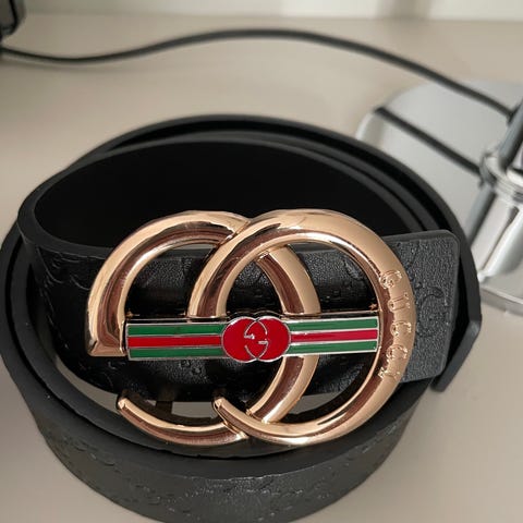 Beltet er 122 cm langt og 2,5 cm bredt.