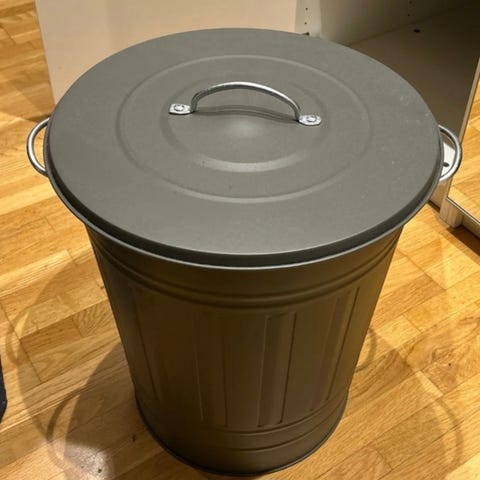 Stødig og dekorativ skittentøysdunk i rustfritt stål.