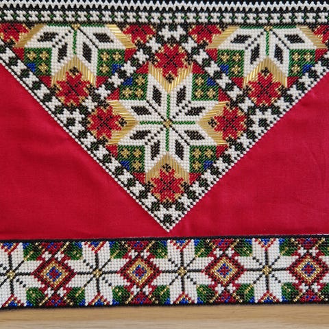 Kan også perle bringeduker og bunadsvesker med andre mønstre på bestilling. Ta kontakt for å se andre mønster-alternativer.