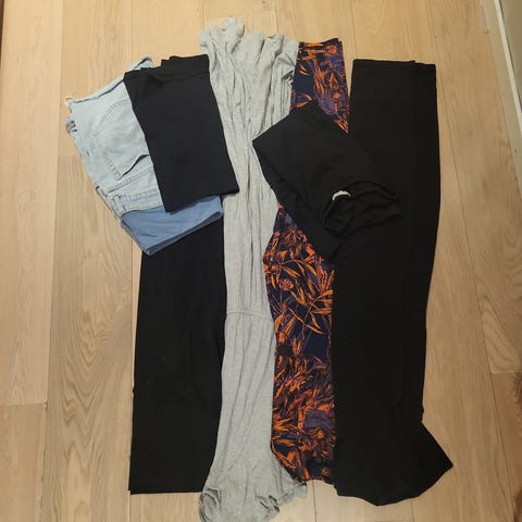 Selger diverse mammaklær/ ammeklær. Alt er veldig pent brukt, en av buksene er ubrukt. Informasjon og pris står oppført nedenfor for hvert eneste plagg. Porto/ emballasje kommer evt. i tillegg dersom varen skal sendes per post.