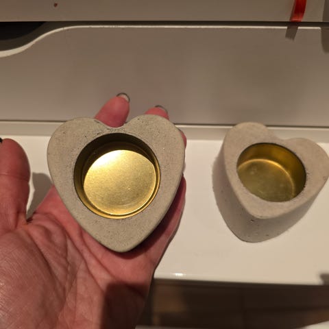 Tror disse er laget av noe leire eller lignende, men er usikker. Tror de ble kjøpt i en alternativbutikk for ca. 20 år siden.